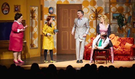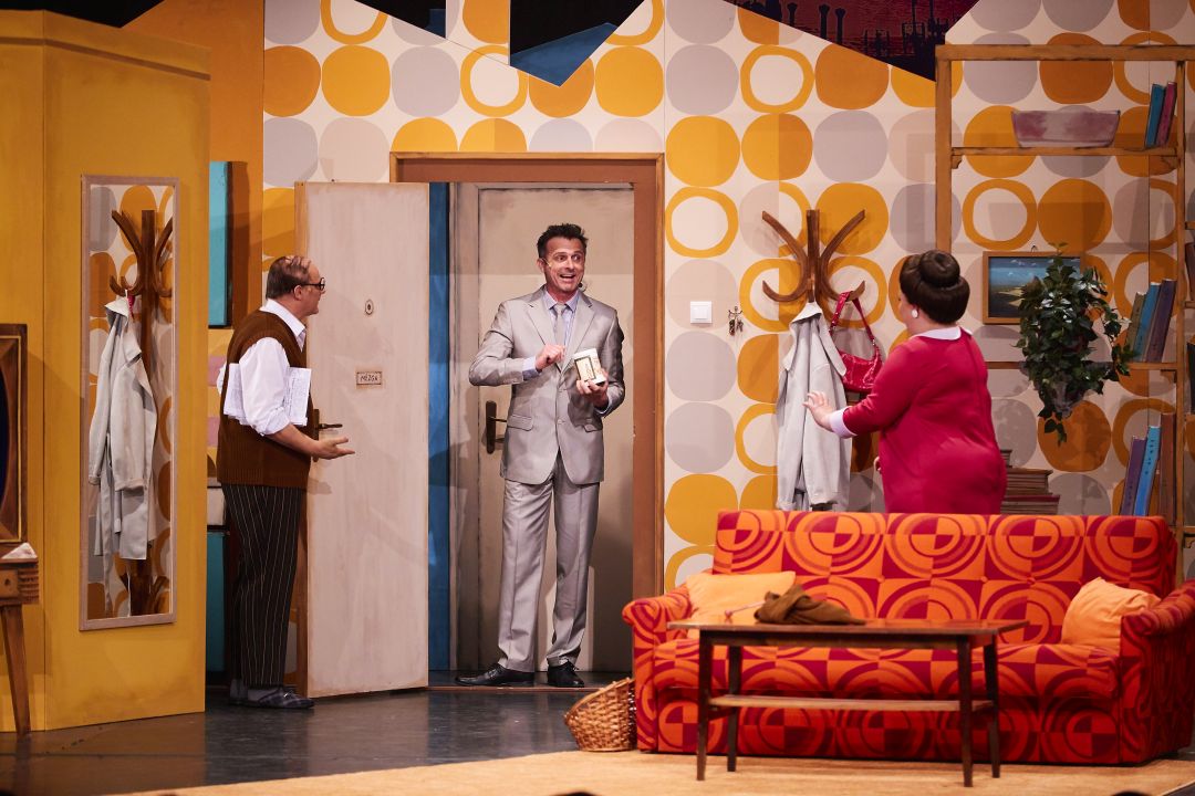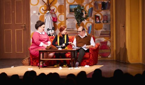 A Mézga Család c. zenés színpadi vígjátékban a Romhányi – Nepp –Ternovszky nevekkel fémjelzett eredeti mű alapján elevenednek meg a közkedvelt karakterek. Életre kel Géza, Paula, Kriszta, Aladár, Blöki és Maffia, természetesen a sorból Máris szomszéd sem maradhat ki, felbukkan a jövőből MZ/X, sőt a sosem látott, de annál gyakrabban emlegetett Hufnágel Pisti és Tivadar is megjelennek a színen.