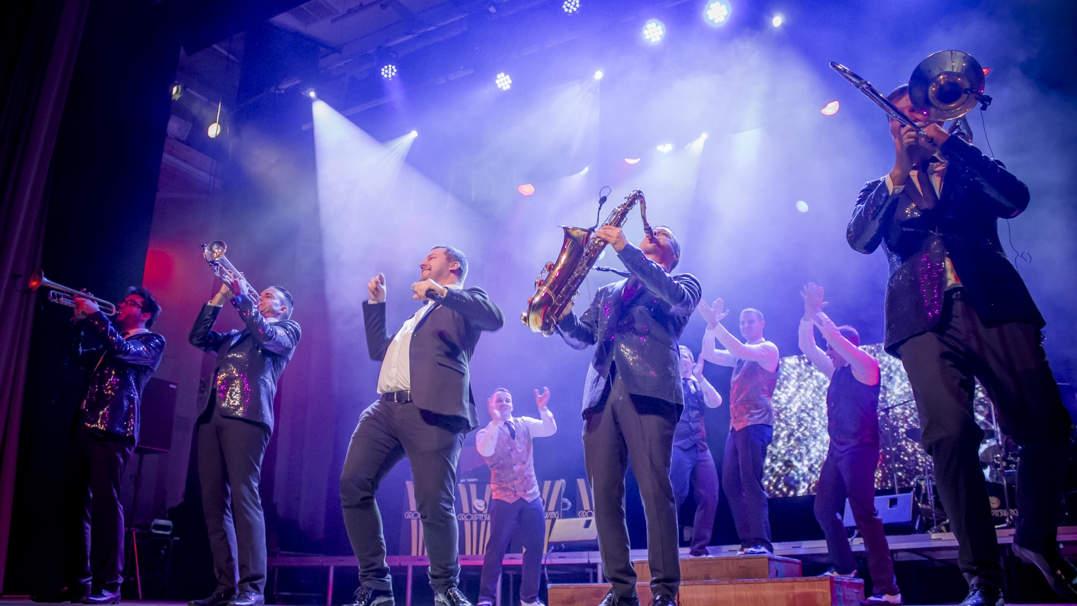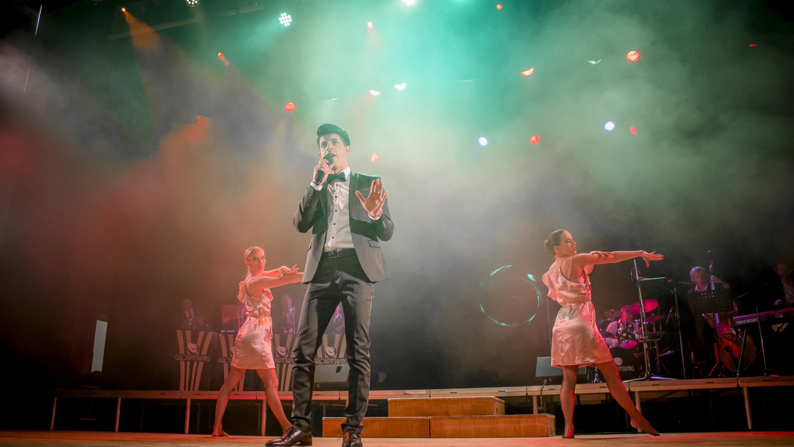 Füstös bárok, félvilági mulatók, félhomályos éttermek, no és a fényűző kaszinók világa. Az izgató bűnök sétánya New York külvárosában, ahol mohó vágyaktól, önfeledt örömben tobzódnak az éjszakák. Itt lép közönség elé a környék legnépszerűbb zenekara, a Group’n’Swing. Kilenc nagyvárosi trubadúr, a bájos múzsa, no és az elbűvölő tánckar. Innen indult és ide vezetett karrierjük, hol fényben izzó, hol árnyékoktól sötétlő útja.