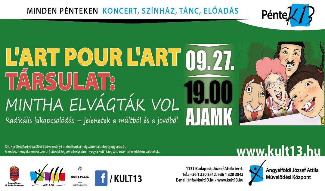 Jegyek a helyszínen vagy a kult13.jegy.hu internetes oldalon válthatók
