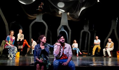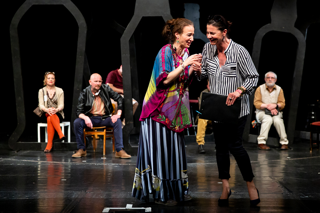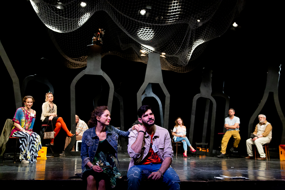 Az Utánképzés többhősös darab, nagy lehetőség tizenegy színésznek, hisz a szerepek súlya szinte azonos, a színen örökösen jelen van mindenki, az is játszik, aki épp nincs benne a dialógusban, és mindezek mellett persze egy kortárs szöveg nyitása egy mai, nagyon a midennapokból fakadó történettel a közönség felé.