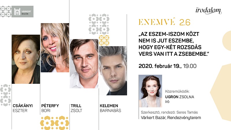 Nagy Magyar Versek, vagyis ENEMVÉ a Várkert Irodalom részeként havonta jelentkező irodalmi sorozat idén szeptemberben a második évadát kezdte meg, hogy ismét elvarázsolja nézőit. Minden alkalommal más a szervező gondolat, de minden alkalommal közös, hogy három ismert színművész, és egy népszerű zenész áll színpadra. Est a a bálról, a farsangról, a mulatságról, a boldogságról, a szokásokról, a táncokról, a kellemről, szemekről és a szemléletekről.