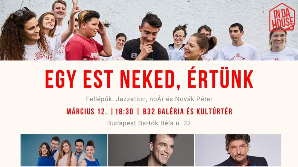 Az est során megismerheted két InDaHouse által támogatott fiatal történetét és az önkénteseink kedvenc sztoriait. Alapítónk, Benkő Fruzsina bemutatja tavalyi sikereinket és idei kihívásainkat. Mindeközben az est fordulatosságát Novák Péter garantálja. A második részben a mindössze 130 fős közönségnek bensőséges koncertet ad a Jazzation, a magyar a capella csapat, akik rendszeresen elhozzák a nemzetközi versenyek első helyezését. Ha mindez nem lenne elég, Molnár Áron elmeséli, miért hagyta ott a színészi karrierjét, a Vígszínházat, a Mi kis falunkat, és a szakmai sikereket miért cserélte le a világmegváltásra a noÁr alapítójaként.
