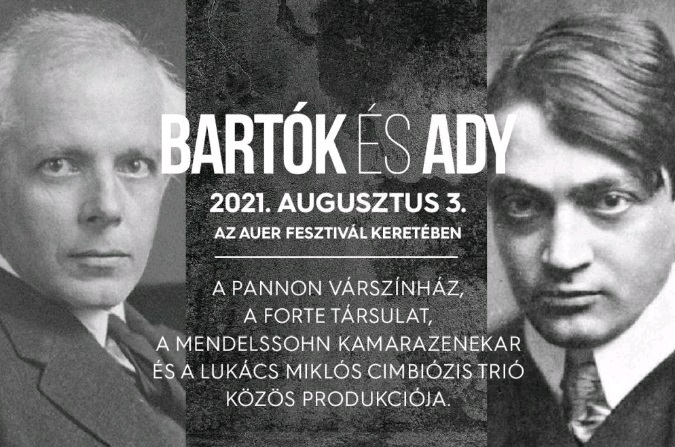 Új szín jelenik meg az Auer fesztivál kínálatában a tánc, az irodalom, a költészet, a leírt és az improvizált zene találkozásából. A két egyfelvonásost tartalmazó estben a zenészek, színész-táncosok a színház misztériumán keresztül világítanak rá a két magyar művészóriás, Bartók és Ady univerzumának párhuzamaira, sorsszerűségük azonosságaira. Ady és Bartók kortársak voltak, akik távolról figyelték és tisztelték egymást. Mindketten nyelvújítónak számítottak koruk művészetében és bár nem igazán volt közöttük személyes kapcsolat, néhány dokumentum azt igazolja, hogy hatottak egymásra. Erről tanúskodik Bartók hagyatékának könyvtárában az Ady verseskötetekben talált több mint másfél száz ceruzás jelölés. Bartók op.16-os dalciklusa pedig az egyetlen olyan műve, ahol a szerző konkrétan a műköltészetből merít, azaz Ady versekre komponál. Az est első részében látható koreográfia inspirációja Bartók Béla szellemi hagyatéka, illetve egy konkrét műve: az 5. vonósnégyes, míg a szünet után Lukács Miklós cimbalomművész–zeneszerző Ady Endre rövid novellái ihlette – a kortárs zene, a jazz és a különböző népek népzenéinek ötvözetéből álló – zenéje adja az alapot. Horváth Csaba rendező-koreográfus segítségével így egyszerre lehet jelen a kortárs és a 20. századi művészet, hogy egy összművészeti élményben részesüljön a közönség, s mindezt a modern színház világában.