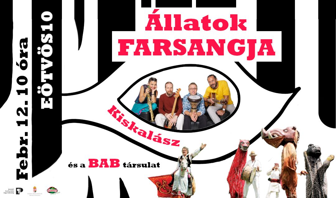 Az Állatok Farsangja egy igazán különleges, eddig soha be nem mutatott előadás, mely gyermekek és családok számára kínál remek szórakozást. A Kiskalász zenekar legkedvesebb állatos dalait hozza el a mulatságba és a jól ismert slágerek mellett, eddig koncerten soha nem hallott dalok is megszólalnak majd. Ott lesz velünk Zooli a zebra, Hepehupa város lakói, Sziszi a dadogós szurikáta, Bella víziló, az egész Tatu család, Fülöpke, a Csörgőkígyó, egy digi-dagi Dongó, és nagyapó is biztosan elhozza kedvenc kecskéjét a Salátamániából. A BAB társulat óriásbábjai lóháton, síppal, dobbal fogadják majd a kedves közönséget, jó alaposan megalapozva a farsangi hangulatot.
