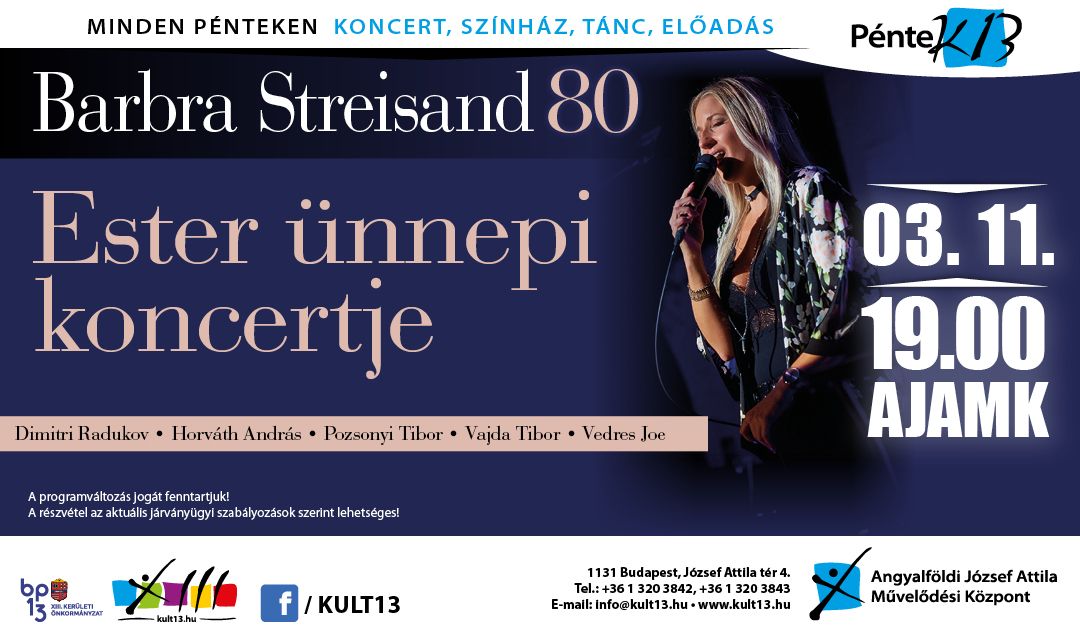 egy különleges „Streisand-os hangja” mi több kisugárzása is. Művésznevén Ester Budapesten a Kőbányai Zenei Stúdióban tanult tovább, megismerkedett a könnyűzenei műfajokkal, majd különböző zenekarokban énekelt, vokálozott. Hangját és személyiségét sokszor hasonlították Streisand-éhoz és neki is nagyon tetszett az a zenei világ, amit ő képvisel. Végül a törökországi Antalyában színpadra vitt egy Streisand műsort, amivel nagy sikert aratott, és pár évvel később, nagy szerencsénkre visszaköltözött Magyarországra, elhozva nekünk is ezt a különleges és szép koncertet.