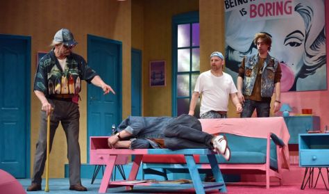 S ha mindez nem lenne elég, az események csúcsán beállít Stanley szenilis apukája is…