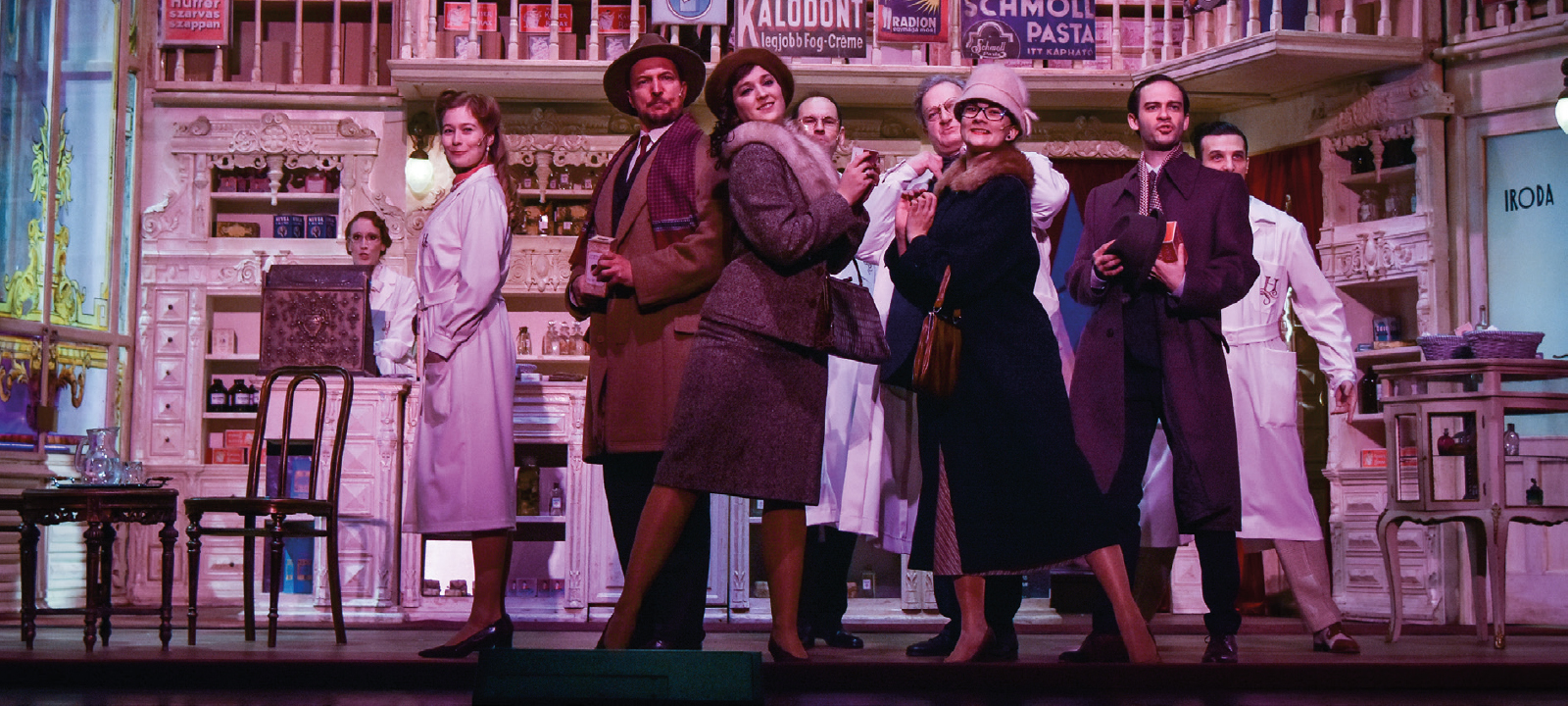 Igazi békebeli illatszertár, ahol nem eladók dolgoznak, hanem boltoskisasszonyok és drogisták, s a megrendelt árut a kifutófiú viszi házhoz biciklin. Az illatszertár tökéletes gépezet, mely a gazdasági válság miatt ritkuló betévedő vevőket a legnagyobb alázattal, tisztelettel szolgálja ki. A kisasszonyok mindig csinosak, frissen fodrászoltak, s szinte egy hallhatatlan keringő légies dallamára mozdulnak. Azt hihetnénk se nekik, se a drogista fiúknak nincs soha semmi gondja, más se foglalkoztatja őket, mint hogy eltalálják a kézkrémben a vazelin helyes arányát.