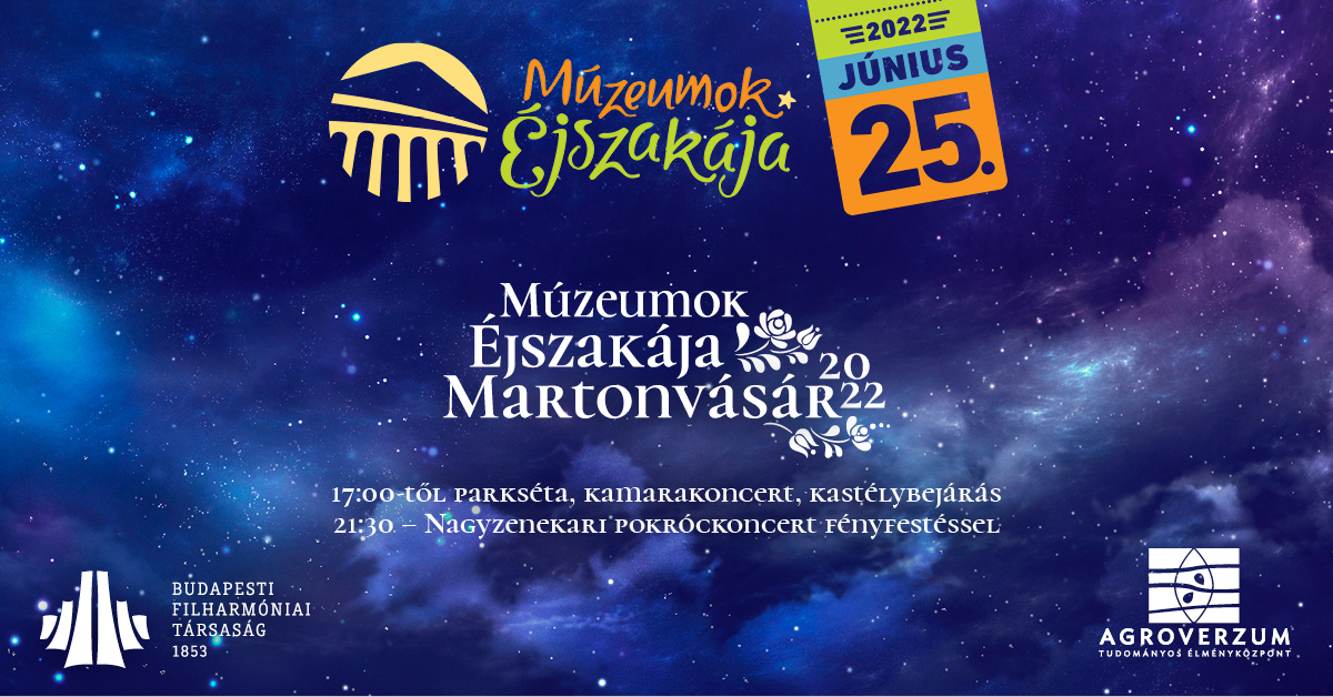 Idén ismét több, különleges programmal készültünk Önöknek a Múzeumok Éjszakáján: parksétáinkat követő kamarakoncertjeinken a klasszikus zenei koncerteken felül filmzenei részleteket hallgathat közönségünk, emellett kastélybejárásokon vehetnek részt az érdeklődők. Az esti nagyzenekari koncerten a kastély épületét, a park gyönyörű platánfáit fényfestéssel helyezzük új dimenzióba. Weiner, Bartók és Kodály szimfonikus művei mellett népzenével is találkozhatnak az ide látogatók.