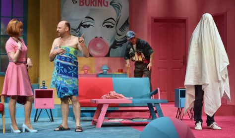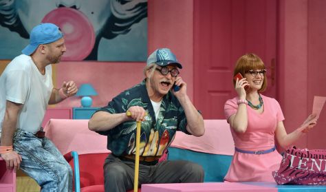 S ha mindez nem lenne elég, az események csúcsán beállít Stanley szenilis apukája is…