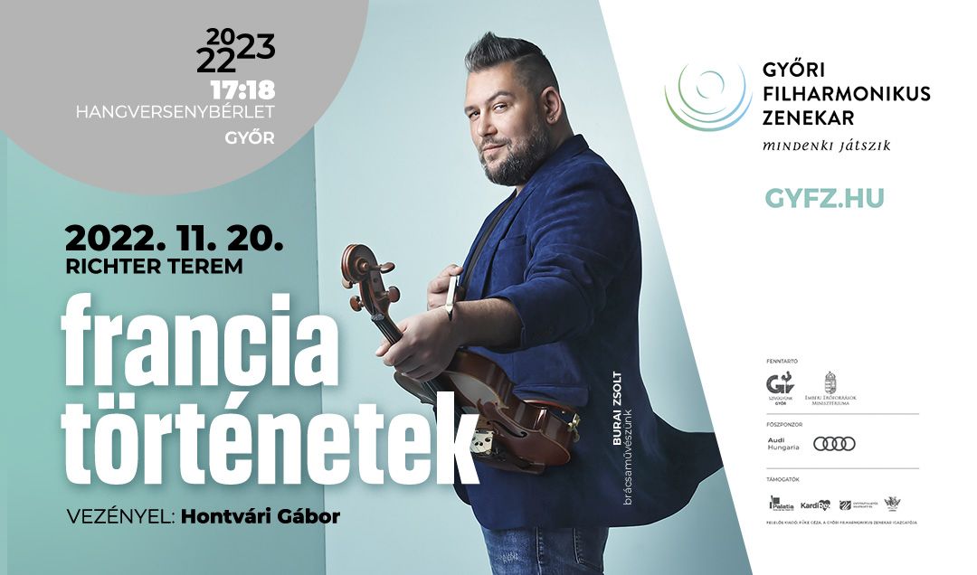 A 17:18-as bérlet nyitóestjének programján a 20. századi francia zene mestereinek művei szerepelnek. Elsőként a világsikert aratott Ravel-alkotás, a Lúdanyó meséi csendül fel a Győri Filharmonikus Zenekar előadásában, a fiatal magyar karmester-generáció nagyon tehetséges, Németországban tevékenykedő tagja, Hontvári Gábor vezényletével. Az est házigazdája dr. Szabó Balázs zenetörténész. A második félidőben Haydn zenéjét hallhatja a közönség: az 1780-as évek közepén Párizsból érkezett felkérés nyomán komponált „Párizsi szimfóniák” pompás sorozatának egyik ékköve, a 86. számú, élettel teli D-dúr szimfónia csendül fel.