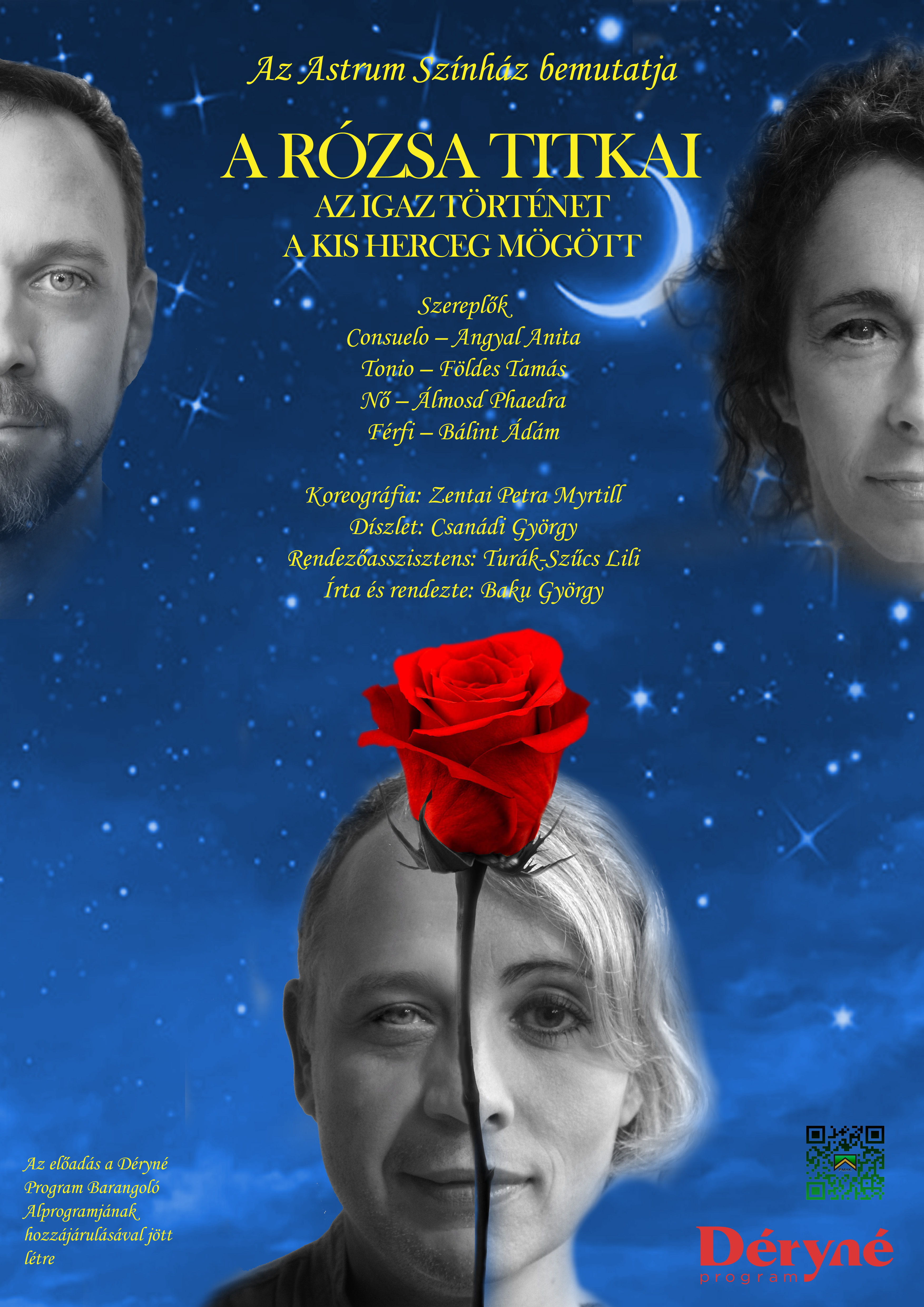 Szereplők: Consuelo – Angyal Anita Tonio – Földes Tamás Nő – Álmosd Phaedra Férfi – Bálint Ádám Koreográfia: Zentai Petra Myrtill Díszlet: Csanádi György Rendezőasszisztens: Turák-Szűcs Lili Írta és rendezte: Baku GyörgyAz előadás a Déryné Program hozzájárulásával jött létre.