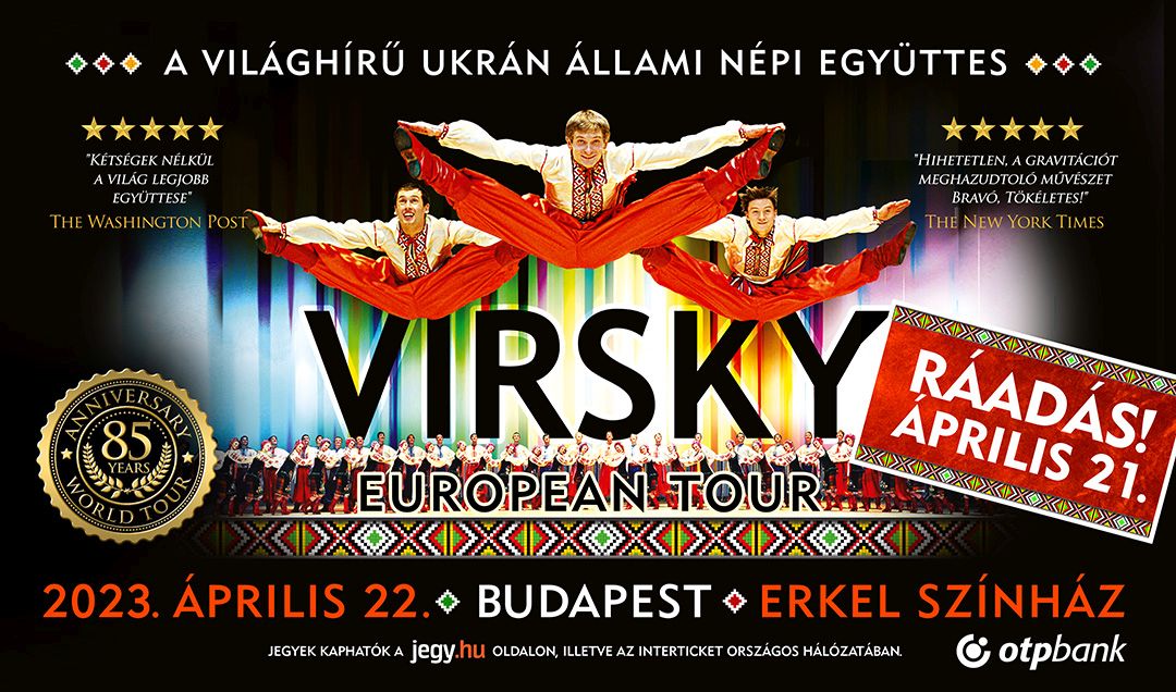 A 84 főből álló világhírű társulat, a VIRSKY Ukrán Állami Népi Együttes 2023. április 17. és április 30. között lesz látható Magyarország nagyvárosaiban. A lélegzetelállító, a fizika törvényeit meghazudtoló és minden nemében egyedülálló produkció mottója: