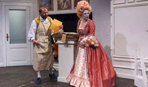 Történhetne bárhol, bármikor, a varázslat mégis akkor kezdődik, amikor eltartva magunktól a MÁT, egy messzi világba utazunk, a rokokó cirádás világába, a csecsebecsék boltjába csöppenünk, ahol minden forma tökéletes, csak az emberi szándékok zavarnak be néha, de a ruhák susognak, rizsporos, púderes mámor. Megnyílik a világ, mint egy zenélő doboz, s egybefonódik minden, ami lelket emelhet tündérestül, feltámadásosul, s mi csak felhőtlenül, olykor keserédesen nevetünk, mert ez egy kedves mese, nem a valóság, üde és kellemes, oly szép, hogy bár igaz lenne.