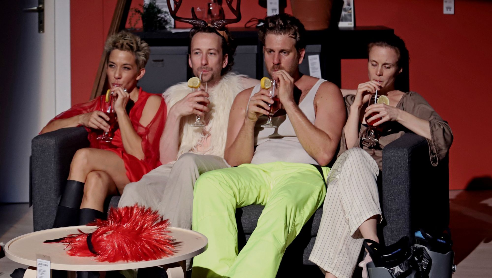 Orsi és Ádám hazaérkeznek a nyaralásból. Valami bűzlik, kikapcsolták az áramot, idegen növény van a konyhaasztalon. És egyszer csak felbukkan a semmiből Kati és Viktor, akik – úgy tűnik – ugyancsak ott laknak. Vagy lehet, hogy ők laknak ott igazából? Egy szürreális fordulatokban gazdag színdarab, amiben semmi sem az, ami. Vajon tényleg a környezetünk határoz meg minket? Kibújhatunk a bőrünkből, szétfeszíthetjük a polgári társadalom kereteit? Az izgalmas dramaturgiájú színdarab számos súlyos témát jár körül humorral és játékosan. Van benne kitörő vulkán, takarítónő-halál és jávorszarvas-szex és egy doboz, amit talán nem kellett volna kinyitni...