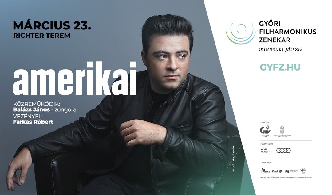 A Győri Filharmonikus Zenekar előadásában a zsáner legnagyobb mestere, George Gershwin két műve is felcsendül: az első félidőben a nagyszabású F-dúr zongoraverseny, amely egyszerre tanúskodik a klasszikus hagyomány hatásáról és a komponista lenyűgöző eredetiségéről. A hangverseny zárószáma pedig a Gene Kelly zseniális filmje által is világszerte ismertté vált Egy amerikai Párizsban lesz. A két Gershwin-mű között az életének utolsó szakaszát amerikai emigrációban töltő Dohnányi Ernő 1953-ban, az Ohio Egyetem jubileumára komponált, népszerű amerikai dallamok fantáziadús feldolgozását kínáló Amerikai rapszódiája hangzik el, majd a zeneszerzőként, karmesterként, zongoristaként és a klasszikus zene felülmúlhatatlan hatású népszerűsítőjeként egyaránt világhírű Leonard Bernstein 1944-ben bemutatott nagysikerű musicalje, „A városban" három dinamikus táncepizódját játssza a Győri Filharmonikus Zenekar. Az est szólistája a magyar zongoraiskola vezető művésze, Balázs János, dirigense Farkas Róbert lesz.