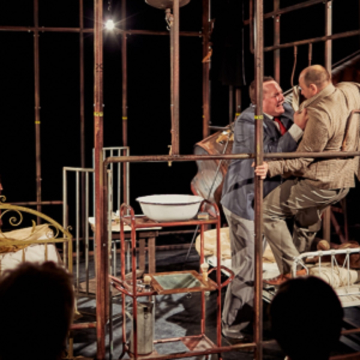 Mrożek drámája húsba vágó és lélekbe markoló kérdéseket feszeget a hazájukat különböző okokból elhagyó emberekről. Valahol idegenben, egy föld alatti pincében élő értelmiségi figura és egy munkás sorsát mutatja meg az előadás a szabadság és a rabság kérdéskörét járva körül, felvillantva az emigrációs lét fájdalmas igazságait. A párhuzamos magányban élő két ember sorsának ábrázolása közben az író valójában egyik figurának sem ad teljes mértékben igazat: hol az egyikük, hol a másikuk igazságát érzi erőteljesebbnek a néző. Sławomir Mrożek darabja különösen aktuális ma, amikor világjelenségként éljük meg, hogy emberek sokasága más országokban igyekszik a jobb élet reményében boldogulni, új identitást találni.