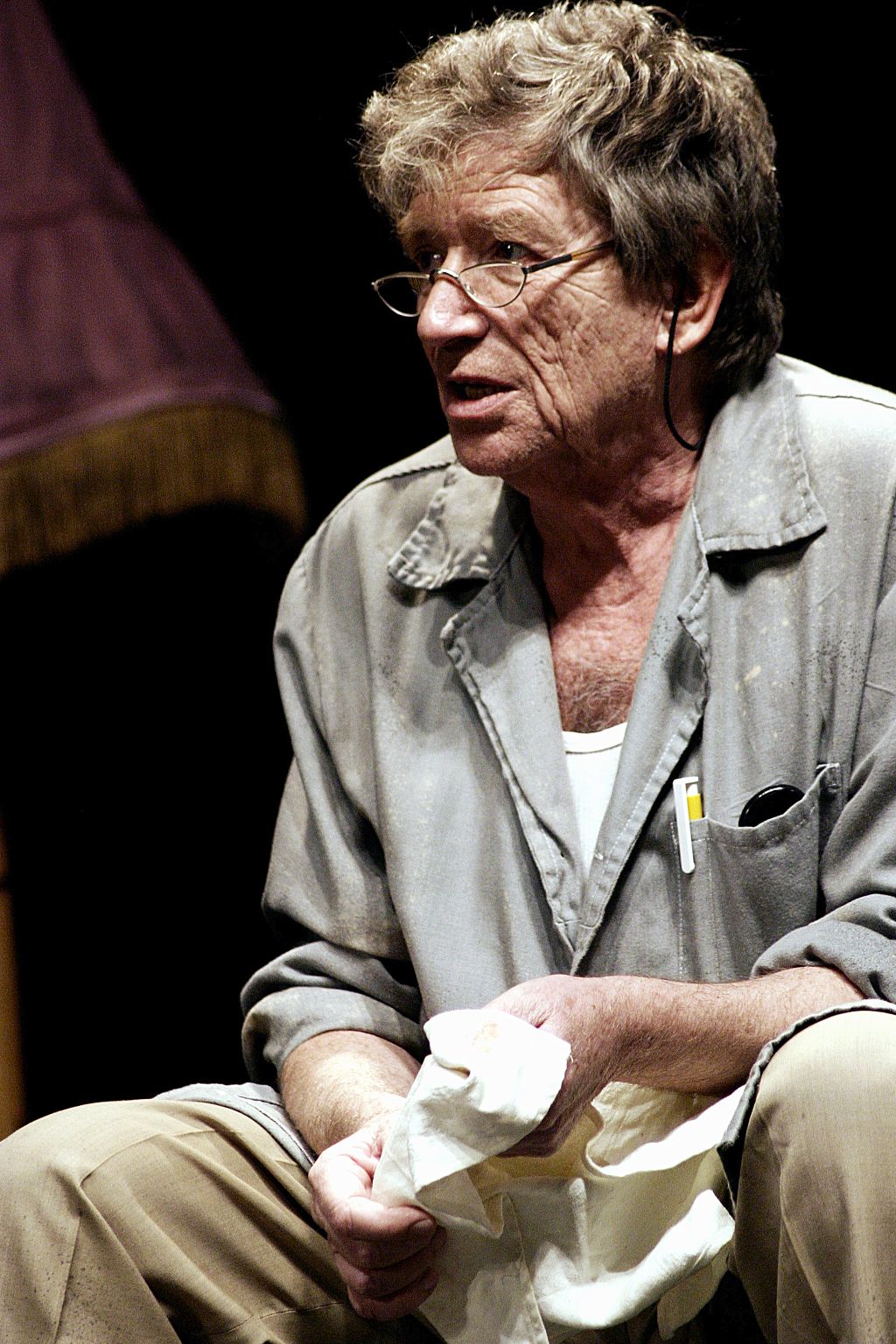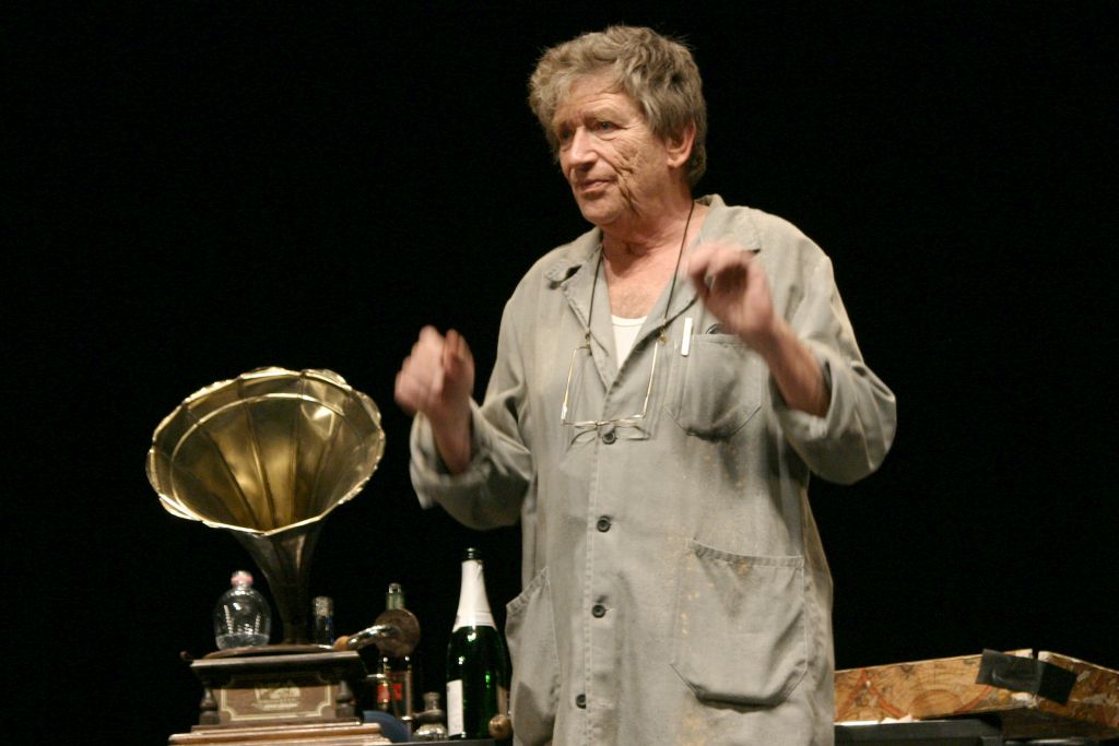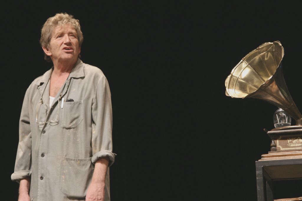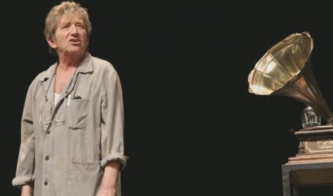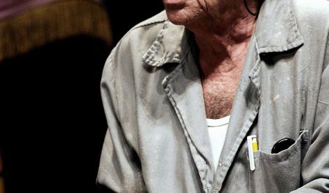 Bieder József előadás után teszi a dolgát, pakol az üres színpadon, s fölnézve közönséggel, méghozzá telt házzal találja magát szembe.