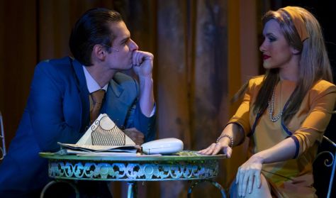 A Jó estét nyár, jó estét szerelem a magyar zenés színházi irodalom egyik legkü lönlegesebb, egyben legsikeresebb darabja. Ősbemutatója óta igazi klasszikussá vált, ami nem is csoda: egyszerre elgondolkodtató, kritikus látlelet a társadalmi álszentségről s az emberi hiszékenységről, ugyanakkor szórakoztató, szellemes, fordulatos, slágerekben gazdag zenés mű is. Örök fiatalság, vastag pénztárca. Irigylésre méltó, csillogó élet? A Jó estét nyár, jó estét szerelem főszereplője önmagát görög diplomatának hazudó, egyszerű melós fiatalember. A férfiak hajlongnak előtte, a legcsinosabb nők az ölébe omlanak. A pimasz kis játék pedig a legnagyobb rendben zajlik – legalábbis egy ideig…