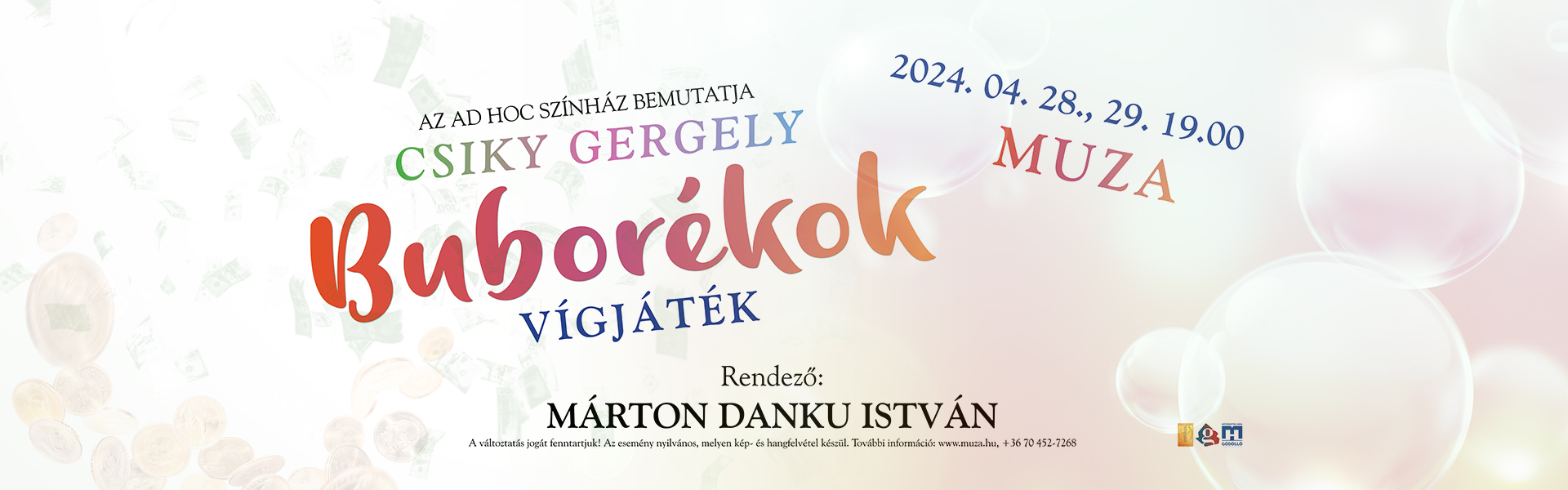 Vesztegetés. Képmutatás. Álomlufik. Lufivágyak. Papucsférj. Csődhelyzet. Érdekházasság. Nagyravágyás. Nyújtózkodás. Tovább. Ameddig. Takaró. Elér. Minden: buborék. Kipukkannak: Finálé.