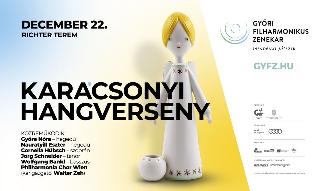 A Győri Filharmonikus Zenekar karácsonyi hangversenyének műsorát Vivaldi ragyogó Gloriájának részlete indítja, majd Johann Sebastian Bach a nagy olasz kortársak concertóit zseniálisan továbbgondoló, két hegedűre és zenekarra szánt d-moll kettősversenye folytatja Györe Nóra és Nauratyill Eszter hegedűművészek szólójával. A Johann Sebastian Bach művészetét újra felfedező Mendelssohn zeneszerzőként is méltó módon lépett a nagy előd nyomába: 1831-ben Rómában komponálta meg a Bach által is rendkívül kedvelt „Vom Himmel hoch da komm ich her” kezdetű szép Luther-éneket feldolgozó, a barokk és a romantika elemeit mesterien ötvöző korálkantátáját. A koncert második felében az olasz opera történetének egyik legnagyobb alakja, Giacomo Puccini fiatalkori remeklése, az 1880-ban még a hivatalos zeneszerzés-tanulmányok előtt komponált, az olasz opera bel canto-varázsát sugárzó Messa di Gloria csendül fel. A koncerten közreműködnek Cornelia Hübsch, Jörg Schneider és Wolfgang Bankl énekművészek, valamint a Philharmonia Chor Wien nagyszerű társulata. Az est dirigense a Győri Filharmonikus Zenekarral intenzív művészi kapcsolatokat ápoló neves osztrák karmester, Norbert Pfafflmeyer lesz.
