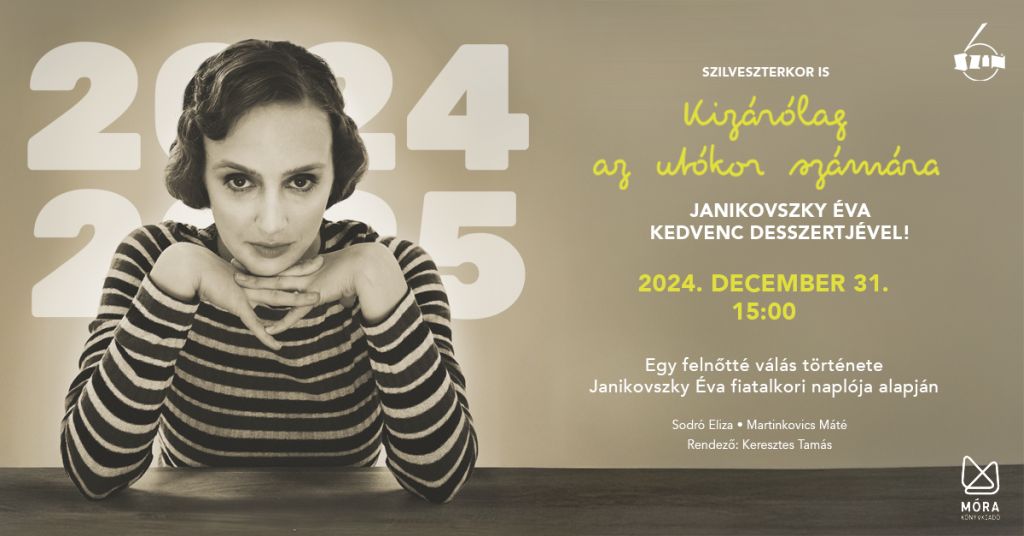 Töltse velünk a szilveszter délutánt! Várjuk szeretettel a 6SZÍNben Sodró Elizával, Martinkovics Mátéval és a fiatal Janikovszky Éva naplójából készült előadással az év utolsó délutánján! Az előadást követően Janikovszky János köszönti a nézőket, és elárulja, mi volt édesanyja, Janikovszky Éva kedvenc desszertje, amit a nézők rögtön meg is kóstolhatnak.