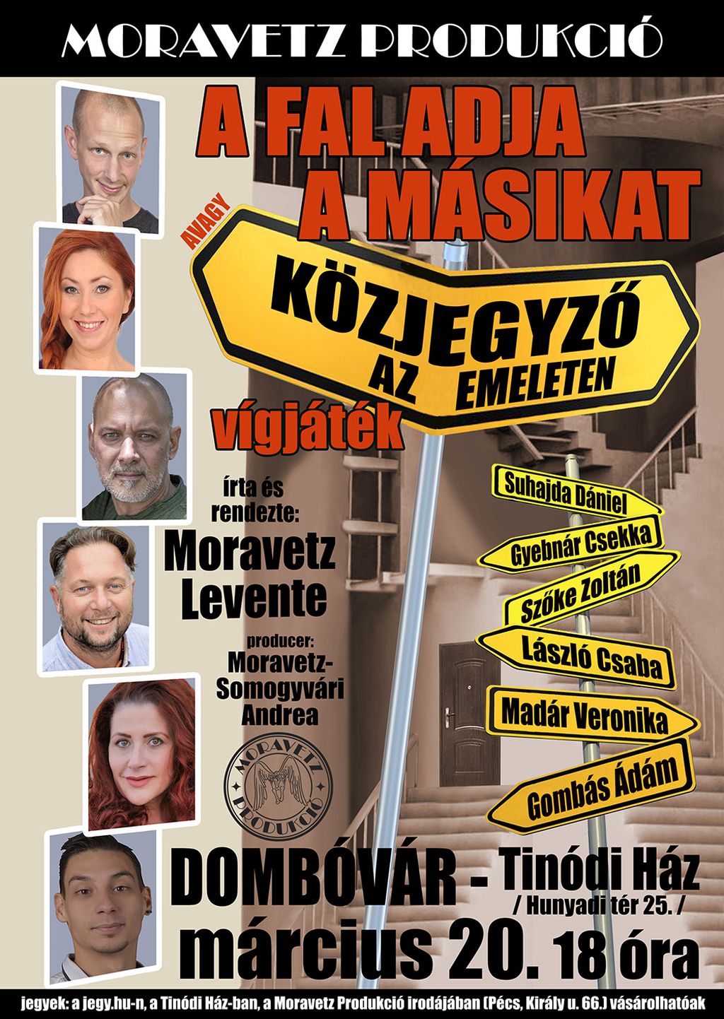 Moravetz Levente neve nem ismeretlen a színházba járó közönség előtt, hisz olyan előadások fűződnek a nevéhez, mint az „Egri csillagok” a „Zrínyi 1566” „A Fejedelem”, a „Sárkányszív” – családi lovas musical, vagy a nemrégiben színre vitt „Volt egy seregünk” vagy az „Isten rabjai” musicalek. De a könnyűműfajban is ott hagyta névjegyét, hogy csak a legutóbbi nagy sikert aratott szériát említsük az „Örömlányok végnapjai” című, vagy, a „Ha Jő A Nő” című zenés vígjátékot, vagy az „Őrületek tornya” és a „Jöhetsz drágám" vígjátékok. Most sem okoz csalódás a nevetőizmoknak. Lesz dolguk bőven. És erre a Moravetz Produkció társulata is garancia hiszen a …