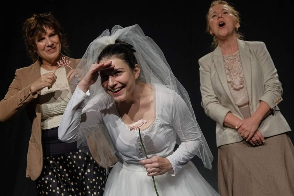 Egy előadás menyasszonyoknak, vőlegényeknek, anyósoknak és apósoknak. A KV Társulat új bemutatójának kiindulópontja egy esküvő előkészületei során kialakult pánik. A vőlegény eltűnik, a mennyasszony kétségbeesve keresi, miközben a két anyós átveszi az irányítást. Az anyósok nyomozásba kezdenek, intézkednek, rendezkednek és miközben gyerekeik sorsát próbálják megoldani, saját életük számos kérdésére is választ kapnak. Felmerülnek a transzgenerációs minták, mi az, amit örököltünk és bárhogyan is szeretnénk, nem tudjuk máshogy csinálni.