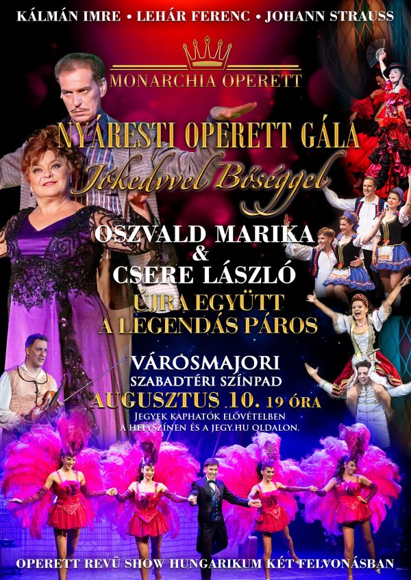 Operett, hungarikum – Egy ízig-vérig magyar műfaj, amelyet az egész világon ismernek, szeretnek és énekelnek. Jelentős szerepe volt ebben a legendás párosnak, akik előadásaik alkalmával az egész világon öregbítették e magyar műfaj hírét. Szerelem, romantika, humor, vidámság, csodálatos dallamok és pazar látványvilág – mindez pedig a Monarchia Operett védjegyévé vált. És most Oszvald Marika és Csere László visszatérése teszi ezt az estét igazán különlegessé!