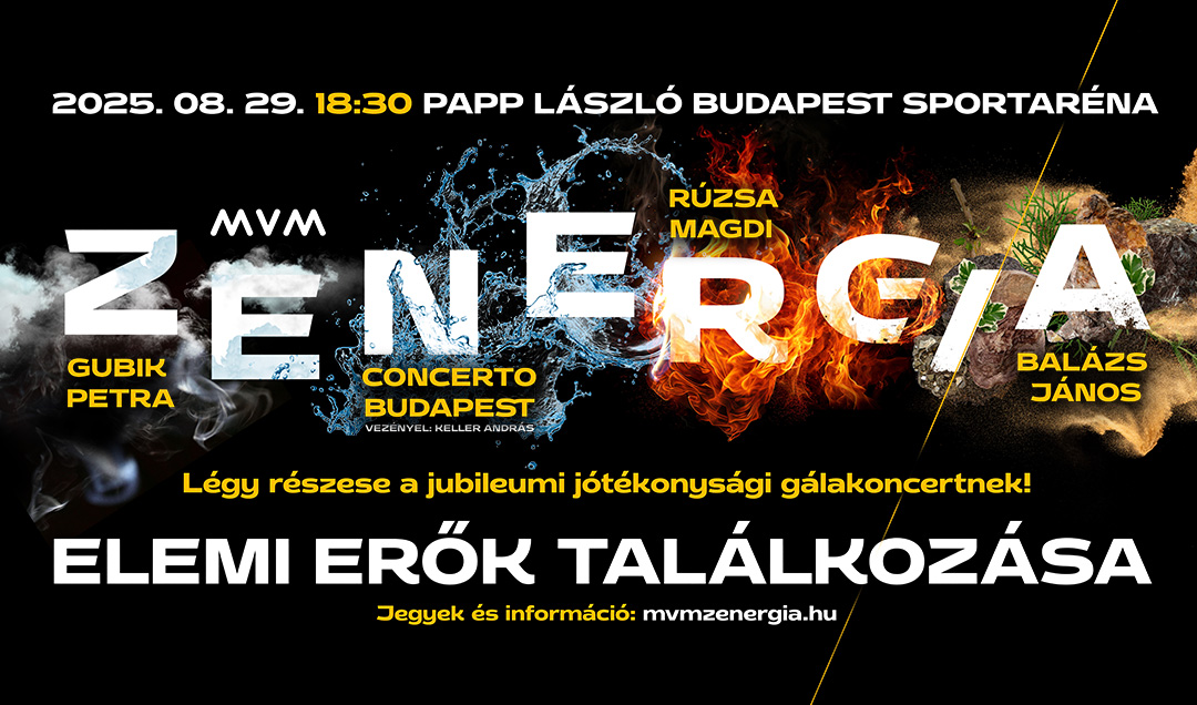 Az MVM idén tizedik alkalommal hívja életre az MVM ZENERGIA egyedülálló koncertjét, amelyen találkozik a zene, a vizuális élmény és a jótékonyság, valamint a klasszikus zene más műfajokkal. Az idei jubileumi eseménynek minden eddiginél grandiózusabb helyszín, a Papp László Budapest Sportaréna ad otthont 2025. augusztus 29-én, pénteken 18:30-tól.