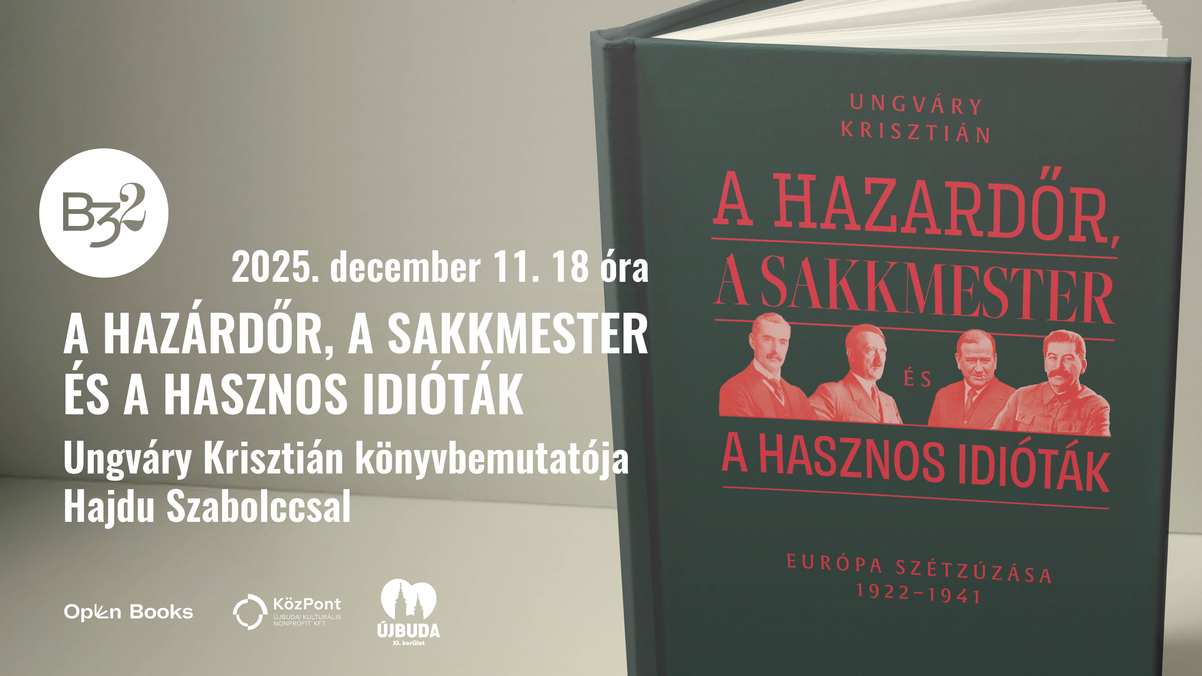Ungváry Krisztián mesél és magyaráz az Open Books kiadónál megjelent legújabb könyvéről. Ezt követően Hajdú Szabolcs rendező kérdezi a történészt tudományról és minden másról.