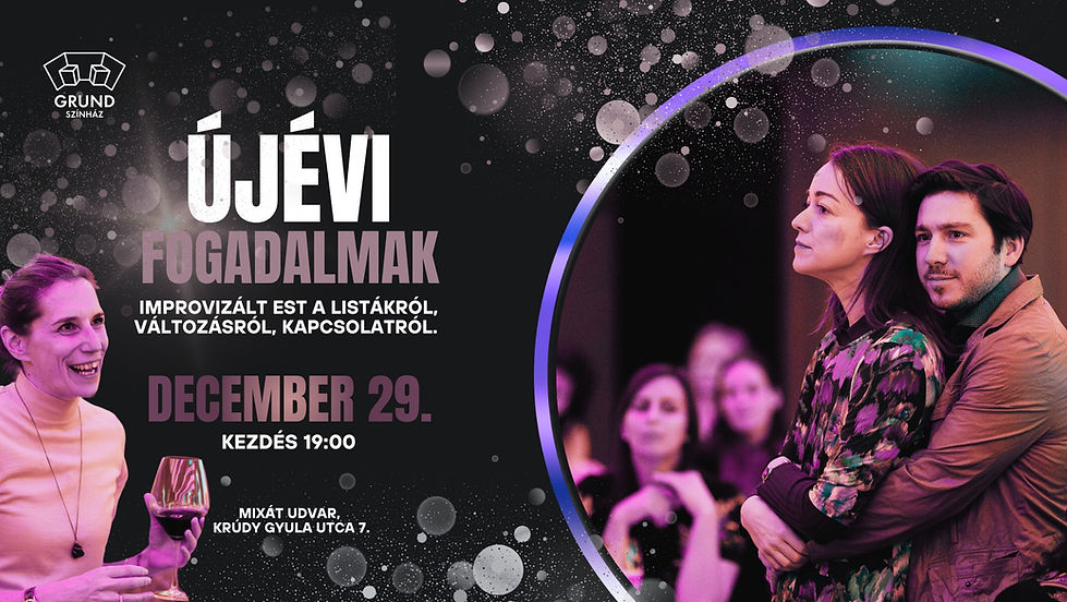 Az Újévi fogadalmak a Grund Színház improvizált színházi előadása az életről, elpazarolt kapcsolatokról, megbánásról és a változás iránti belső igényünkről.