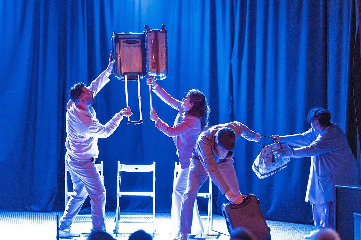 A reptér és a repülőtéri váróterem szimbolikus, zárt tere különféle nemzetiségű – lengyel, örmény, szlovák, görög, szerb, horvát, német – utasok kényszerű találkozási pontja. Honnan jöttünk, hová tartunk? Ki szegődik mellénk útitársként és ki az, akitől szabadulni próbálunk? Milyenek vagyunk: idegenek, színesek, más ajkúak, de mégis egyek? Milyen történeteket viszünk magunkkal az útra és mi az, amit igyekszünk végleg magunk mögött hagyni? Kik vagyunk? Mit és miért tartunk fontosnak elmondani a végállomáson?