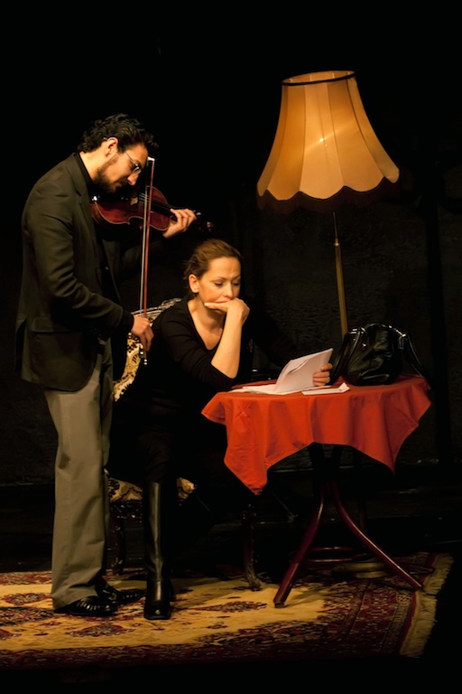 színpadon a hegedűs, aki egyben az est zeneszerzője. Játékával,