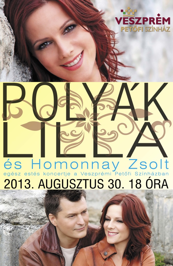 Polyák Lilla és Homonnay Zsolt ad koncertet augusztus 30-án este hat órakor a Veszprémi Petőfi Színházban.Polyák Lilla és Homonnay Zsolt pár éve egy nagy sikerű duett lemezzel