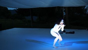 Most, a forrás felé visszasétálva, “Azul†újrajárja feledésbe merült emlékeit, meglátva mindazokat a rétegeket, hártyákat, melyek eltakarták a kilátást, a szabad eget. A kék madár, mely a szív fényes ürességében lakozik, énekelni, repülni, táncolni szeretne. Gyakran félelmeink akadályozzák meg a vele való találkozást, és szabad szárnyalását.