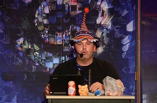 Kedves Vendégeink! Városnéző túránk következő állomásaként engedjék meg, hogy bemutassak egy helyi nevezetességet! Ez a kis üzlet maga a misztikum. Nem régen van nyitva, mégis számtalan generáció tapasztalata gyűlt benne össze.A tulajdonos-üzletvezető évszázados bölcsességgel megáldott, kortalan, különös szerzet. Átható tekintete szinte a fejünkbe lát, közvetlenül gondolatainkba hatol és – segédei segítségével – mindig éppen azt a portékát ajánlja, amire szükségünk van. Dombi. Így hívják őt. Jöjjenek, nézzenek szét itt, a Hülyeségek kicsiny boltjában!