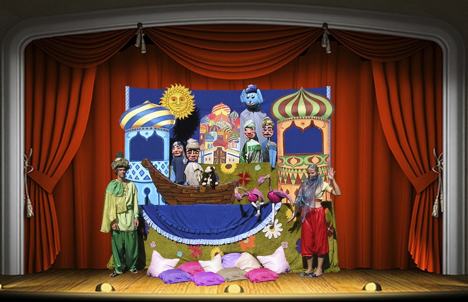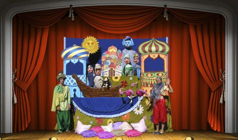 Az Ezeregyéjszaka legszebb meséiA gyönyörűséges Seherezádé meséi költészetté formálják a valóságot, s elvezetnek Sahriár király pompázatos palotájába, a gyönyörű díszletekkel megelevenített Keletre. Seherezádé izgalmas történeteket mesél a bagdadi kalifáról, a halászról, a palackból kiszabadított szellemről, Ifritről és a naplopó Abu Mohamedről. Az élő szereplők mellett botos- és óriásbábok jelennek meg a csillogó palotában és egy nagy hajón. A különleges hangulatot keleti zenék adják.