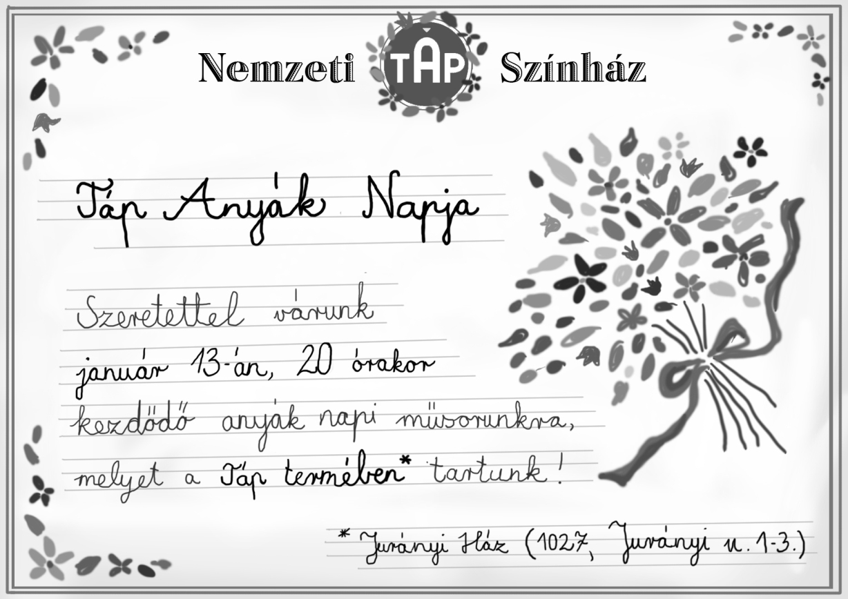 TÁP Anyák napjaSzeretettel várunk január 13-án 20 órakor kezdődő anyák napi műsorunkra, melyet a Táp termében tartunk!