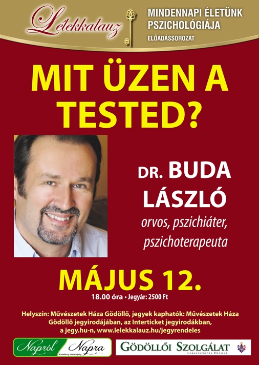 A Lélekkalauz tavaszi sorozatának utolsó előadója, Dr. Buda László orvos, pszichiáter, pszichoterapeuta.Tested tükrözi érzelmeidet, gondolataidat, emlékeidet, kapcsolataidat, konfliktusaidat. Feltárul benne egész élettörténeted sőt, gyakran szüleidé, felmenőidé is. Ha meg akarod fejteni, mit üzennek a tüneteid, ha szeretnél meggyógyulni, fontos, hogy képes legyél kommunikálni testeddel, élményed legyen arról, hogyan szólíthatod meg, és miként válaszol neked a maga sajátos "nyelvén". A test ugyanis sohasem hazudik. Közlésmódja tiszta, erőteljes, maximálisan személyes és igen, sokszor fájdalmas, kíméletlen. Ugyanakkor, minden pillanatban készen áll arra, hogy segítsen valami lényegeset megérteni és megváltoztatni.