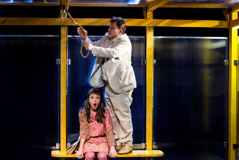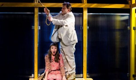 Az előadásban két olyan színész is főszerepet alakít, akiket a Szkénében is gyakran látni: Király Attila az igazgató urat, míg Tóth József az öngyilkosságra készülő férfit alakítja.
