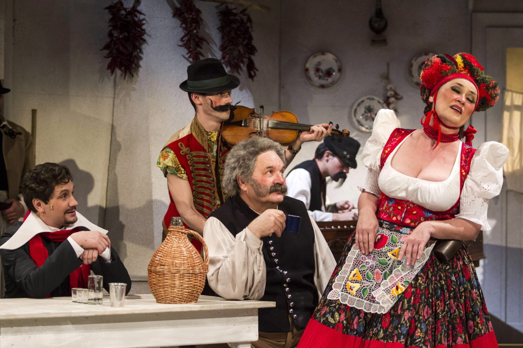 Ti, kik erős lélekkel birván Meg nem szeppentek a harci morajtól, Halljátok szavamat! De ti, a kiknek szíve Keményebb dolgoknál A test alsó részébe hanyatlik, Oh ti kerűljétek szavamat! – ajánlja művét olvasóinak figyelmébe Petőfi Sándor. És aligha akarjuk „kerűlni” szavait. Mert már a szereplők nevén is nevetni kell, és ha hozzáképzeljük az őket alakító színészeket, csak tovább fokozódik a jókedvünk. Szemérmetes Erzsók ötvenötéves bájaival– Udvaros Dorottya. Fejenagy, a kovács, vagy „mint őt a dús képzeletű nép költőileg elnevezé: a helység kalapácsa” – Eperjes Károly. Harangláb, a fondor lelkületű egyházfi – Schnell Ádám. Bagarja, a béke barátja – Újvári Zoltán. Vitéz Csepü Palkó, a tiszteletes két pej csikajának Jókedvű abrakolója – Kristán Attila. A lágyszívű kántor –Szarvas József, és „amazontermészetü” felesége, Márta – Nagy Mari... A helység kalapácsa 1844-ben, három hónappal a János vitéz előtt született. Petőfi definíciójában hősköltemény, valójában komikus eposz, eposzparódia. Az irodalomtörténetnek máig nem sikerült megfejtenie, hogy ez a vérbő humorral megírt eposz-paródia miért nem aratott sikert a maga korában. Meglehet, hogy nemcsak a „fentebb stílt” kultiváló pályatársak, de a nagyközönség is nehezen állta a pesti segédszerkesztővé avanzsált huszonegy éves borzas fejű ifjú éles humorát, aki ezzel a művével pimasz módon tükröt tartott a bécsi biedermeier ízlés felé kacsingató úgynevezett „nemzeti karakter”-nek is. Ha őszinték vagyunk magunkhoz, bármennyire is élvezzük a magyar észjárás antik hexameterbe gyömöszölt nyelvi fordulatait, dinamikáját, szószaporító sziporkáit, abba a bizonyos tükörbe ma se szívesen nézünk bele. Az az egykori tükör ugyanis ma is hiteles karikatúráját adja az egymással folyvást civakodó magyaroknak. Talán ez az oka, hogy bár ez a mű kétségkívül színpadért kiált, és folyamatosan jelen is van az utcaszínházak műsorán, a hivatásos kőszínházakban mégsem lett állandó repertoár-darab. Győzött az operett: a János vitéz sem mint dramatizált tündérmese, hanem mint dalmű aratott sikert a hazai színpadokon.