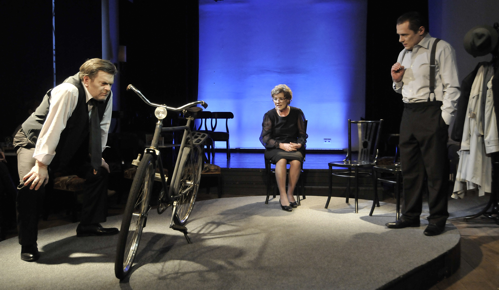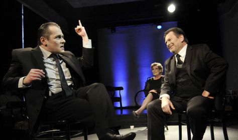A két világhírű atomfizikus, a dán Niels Bohr és a német Werner Heisenberg szoros munkatársi és még szorosabb baráti kapcsolatot ápolt egymással. A második világháború kitörésével minden megváltozott: 1940-ben Németország lerohanta Dániát, ők pedig barátokból hirtelen elnyomóvá és elnyomottá lettek. Heisenberg a náci Németország atomprogramjának vezetőjeként az atombomba feltalálásán dolgozott. A kutatások azonban lassan haladtak. Vajon Heisenberg egyszerűen csak tévúton járt vagy szándékosan szabotálta a munkát, hogy ne kerülhessen tömegpusztító fegyver Hitler kezébe? Milyen morális döntéseket kell és lehet meghozni egy tudósnak saját és az emberiség érdekében? Michael Frayn valós eseményeken alapuló okos és érzékeny színműve, mely 2000-ben elnyerte a legjobb drámának járó Tony-díjat, egy különös találkozáson keresztül keres választ ezekre a kérdésekre. Fotó: Éder Vera