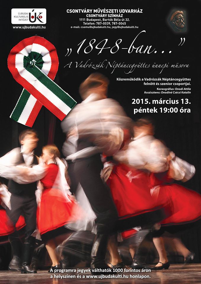 Az 1848-as forradalomnak és a márciusi ifjaknak emléket állító táncos megemlékezés erdélyi és magyarországi táncokból.