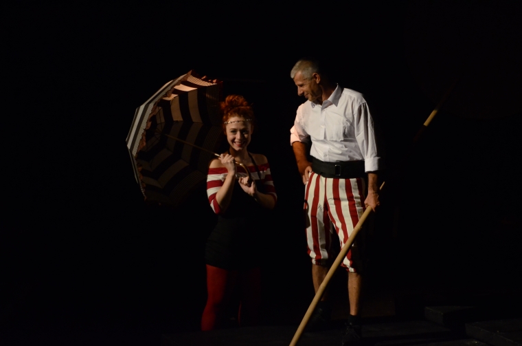 Világszám egy felvonásban Az Új Stúdió vendégjátéka Blondin, a kiöregedett artista életét kockáztatva rendszeres időközönként, biztosítás nélkül, egy kötélen sétál át a Niagara fölött. Olykor zsákban teszi meg az utat vagy talicskát tol, esetleg megáll omlettet sütni. Mivel szenvedélyének természetes velejárója a veszély, ez valamennyire érthető, de amikor egyik rajongója, a tizenhét éves Carolin azzal az ötlettel áll elő, hogy mindkettőjük életét kockáztatva őt vigye át a Niagara fölött, az már Blondin számára is igazi őrültségnek hangzik. Mi mindennel kell megküzdeniük, hogy elindulhasson a közös tánc a kötélen? Mire jó mindez? Talán arra, hogy megértsük; értelmetlennek tűnő örültségeink jelentős részben megmagyarázhatóak…?