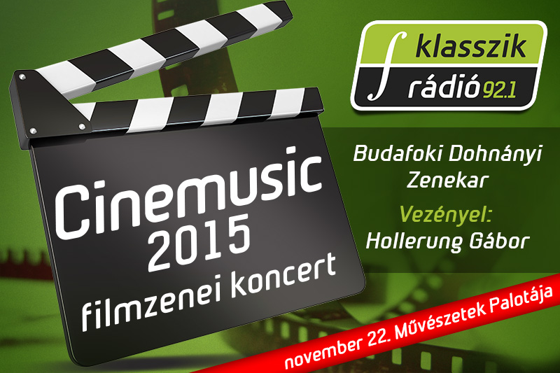 A Budafoki Dohnányi Zenekar ezúttal is Hollerung Gábor vezényletével lép színpadra, ami önmagában garancia a színvonalas kikapcsolódásra. A koncert idén is nagy érdeklődésre tett szert, így az összes jegy elkelt a rendezvényre. A CINEMUSIC koncerten az alábbi filmek zenéi csendülnek fel: Amerika kapitány Az élet szép Cinema Paradiso Stardust Repcsik 2 Harry Potter Amelie csodálatos élete Edit Piaf - Je ne regrette rien Beethoven árnyékában *Szünet* Egy ágyban az ellenséggel 2001 Űrodüsszeia Interstellar Valami Amerika 2 Indiana Jones Transformers Pókember 3 Star Wars