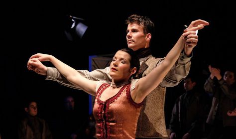 A házasság az emberi élet legfontosabb és talán legnehezebb velejárója. A menyegző egyfajta küszöbállapot, átváltozás, szakrális átlényegülés. A feléje vezető út, a házasodás, a lakodalom, a vendégség és annak mindenkori szertartásaival átitatott képek közös emlékezetünk fontos részét alkotják. Mit vállalunk mindebből elköteleződésünkkel? Mi az, ami örök időktől fogva lélekemelő, és mi maradt meg abból az állapotból, ami a korai és a néhai erdélyi lélekben létezőként érvényesült? Folklór-színházi költeményünk táncetűdök lírai és dinamikus képeinek fűzére: az élő népzene és ének, a vendég kamarakórus, a vetített animáció és a táncnyelven elbeszélt állapotok többszólamúsága, mely összességében egy új, az itthont erősítő reményhez teremt új világot. Az előadás 19.00 órakor kezdődik. Zene / Music: Kelemen László m.v. Jelmez / Costumes: Furik Rita m.v. Díszlet és animáció / Sets and animation: Ütő Gusztáv m.v., Munkácsy-díjas képzőművész és Ferencz Hunor m.v. Forgatókönyv, dramaturg / Script and dramaturgy: Prezsmer Boglárka m.v. A rendező munkatársai / Assistant to Director: Prezsmer Boglárka m.v., Orza Calin m. v. Koreográfusi asszisztensek / Assistants to choreographers: Ivácson László és Tekeres Gizella Koreográfusok / Choreographers: Mihályi Gábor m.v., Orza Calin m.v. Rendező-koreográfus / Directed and choreographed by Mihályi Gábor m.v. Az előadás létrejöttét a Nemzeti Kulturális Alap támogatta. A Háromszék Táncegyüttes hivatalos fenntartója Kovászna Megye Tanácsa.