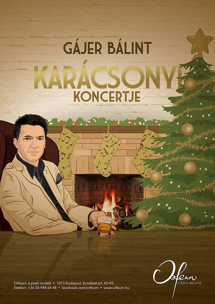 A swing magyar királyának, a Bublé & More-koncertek főhősének, Gájer Bálint karácsonyi estje a könnyűzenei irodalom érzelmes, fülbemászó táncdalaival. Mielőtt az egyetlen pesti mulató is néhány napra pihenni megy, vendégeinkkel összebújunk egy képzeletbeli, fahéj- és mézeskalács-illatú kandalló előtt. Kapunyitás 16 órakor Programkezdés 17 órakor A helyszínt az esti koncert miatt legkésőbb 19 óráig el kell hagyni. Jegyárak: Prémium: 3.200 Ft Standard: 2.200 Ft Foglalási információk: http://orfeum.hu/foglalas A műsorváltoztatás jogát fenntartjuk! Gájer Bálint karácsonyi koncertje (2015. december 21. 21 óra): A swing magyar királyának karácsonyi estje a könnyűzenei irodalom érzelmes, fülbemászó táncdalaival. A swing magyar királyának, a Bublé & More-koncertek főhősének, Gájer Bálint karácsonyi estje a könnyűzenei irodalom érzelmes, fülbemászó táncdalaival. Mielőtt az egyetlen pesti mulató is néhány napra pihenni megy, vendégeinkkel összebújunk egy képzeletbeli, fahéj- és mézeskalács-illatú kandalló előtt. Kapunyitás 20 órakor Programkezdés 21 órakor Vacsorázási lehetőség 23 óráig Jegyárak: Prémium: 3.800 Ft Standard: 2.800 Ft Foglalási információk: http://orfeum.hu/foglalas A műsorváltoztatás jogát fenntartjuk!