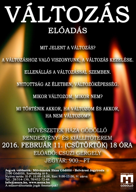 Az előadás időtartama: 60 perc, szünet nélkül. Előadó: Csúzi Gergely Mit jelent a változás?