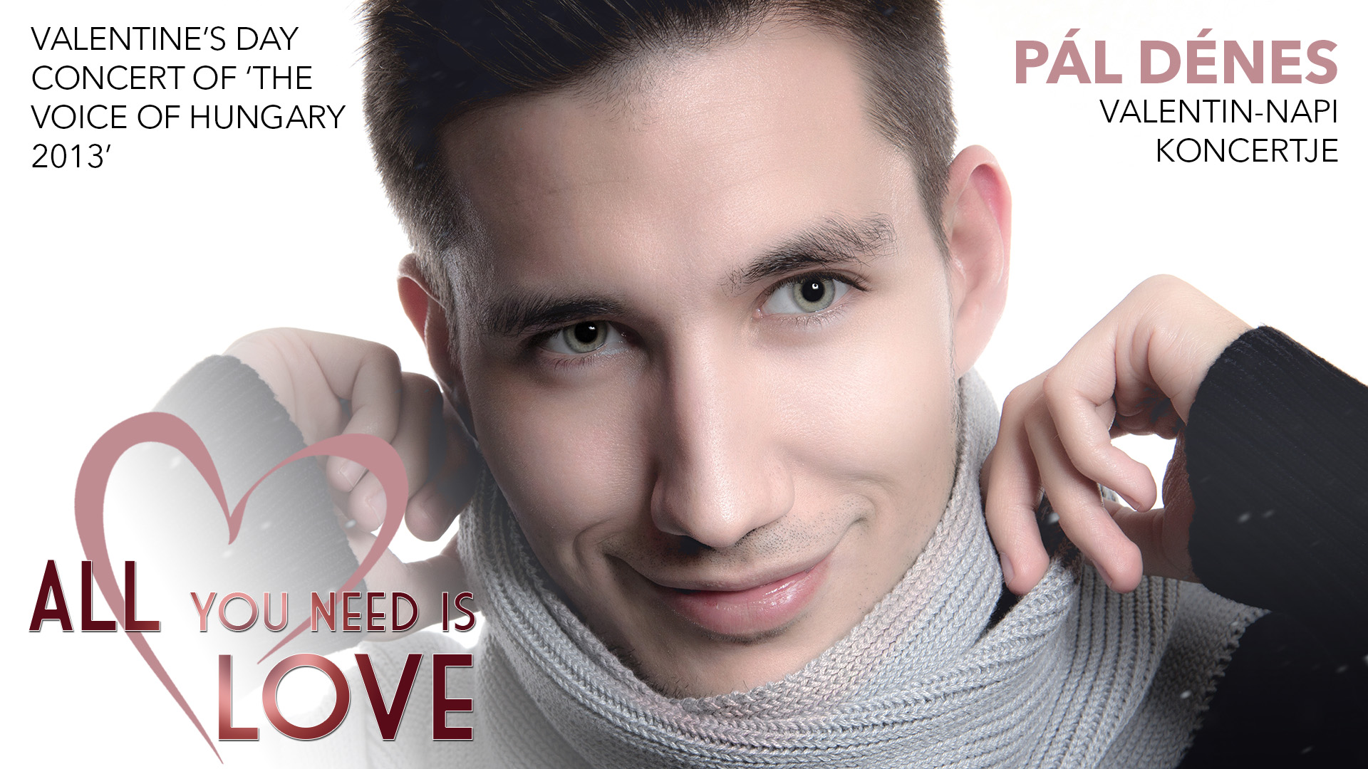 Pál Dénes, a 2013. évi The Voice – Magyarország hangja győztesének élőzenés Valentin-napi koncertje saját dalokkal, valamint magyar és külföldi slágerekkel.