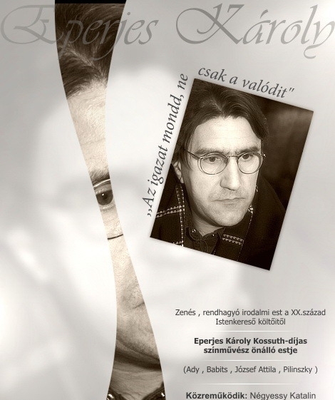 Eperjes Károly Kossuth-díjas színművész "színháza" a XX. század Istenkereső költőinek műveiból. Ady, Babits, József Attila, Pilinszky... Gordonkán közreműködik: Négyessy Katalin